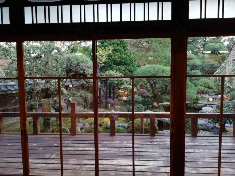 ステキなお庭ね。雪見障子って言うんだっけ?