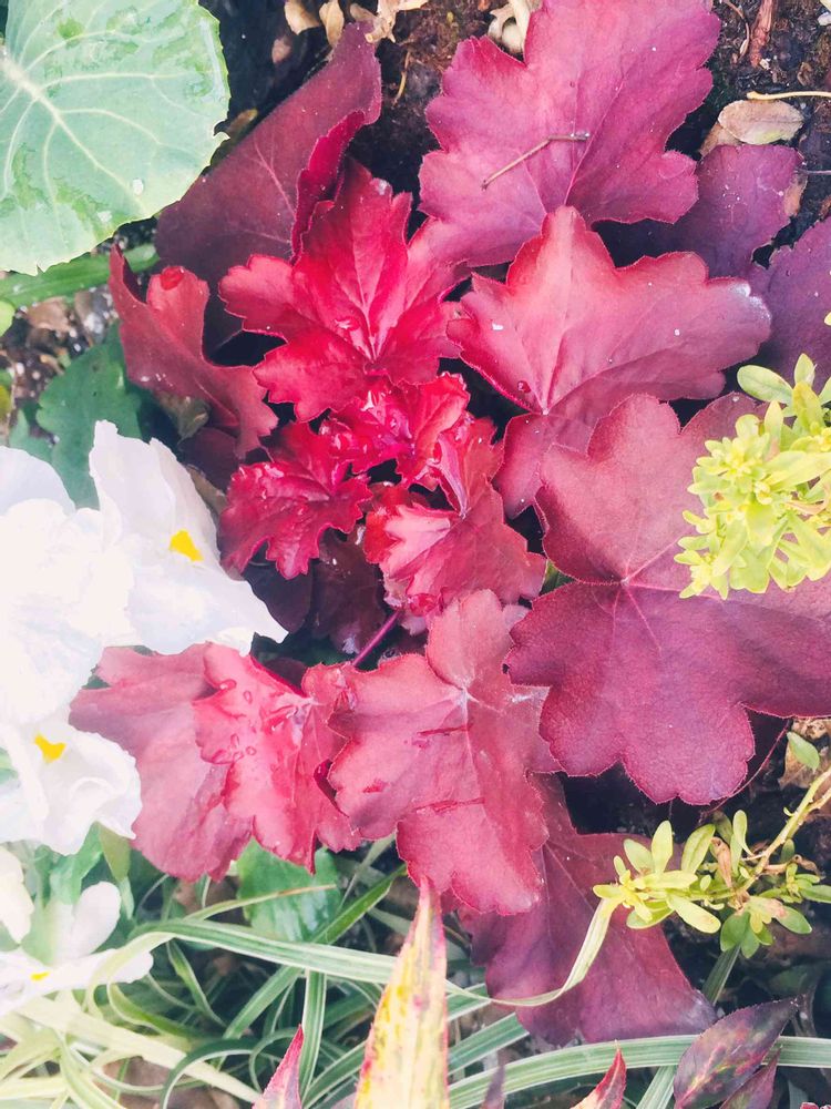 今年はヒューケラ 鉢に入れずに 3色 花壇
