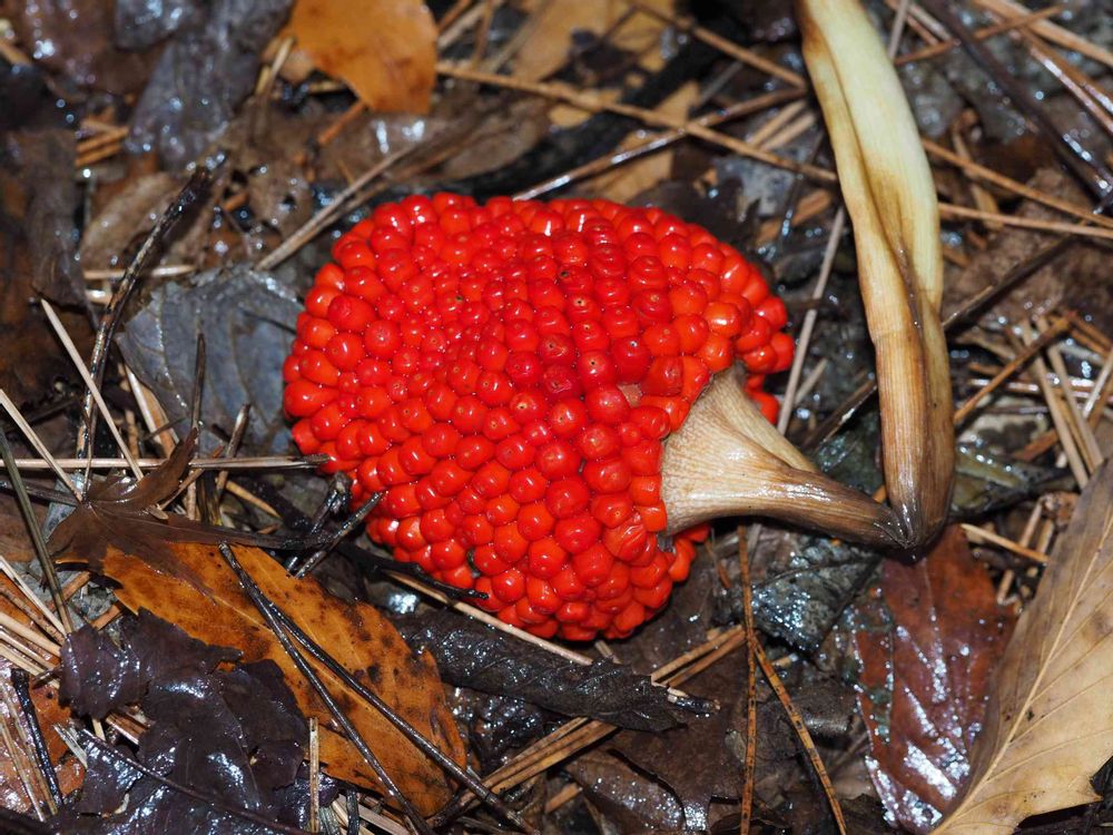 ムサシアブミの実は、茎が枯れて折れても赤さを失わないのですね!😲‼️