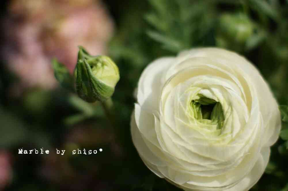 真ん中グリーン、花びらクリームのラナンキュラス、めっちゃ好き~♪