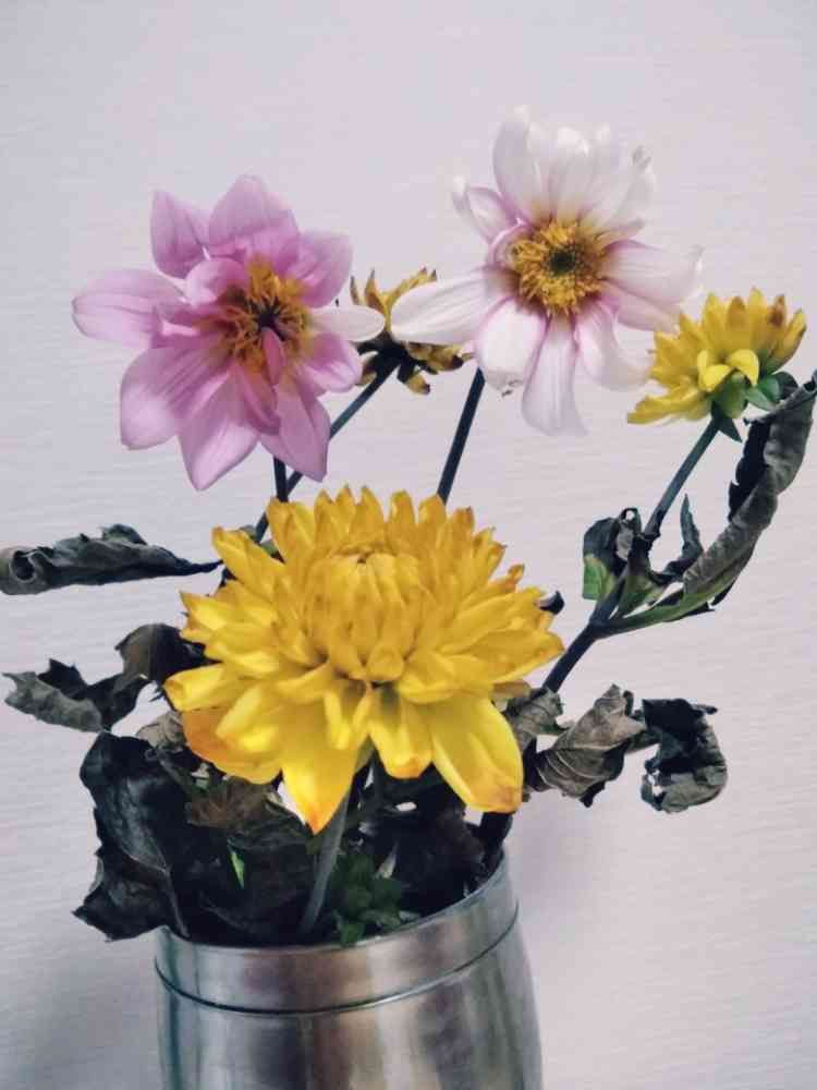 雪予報の為今までがんばって咲いていた娘達を、摘んて来ました。