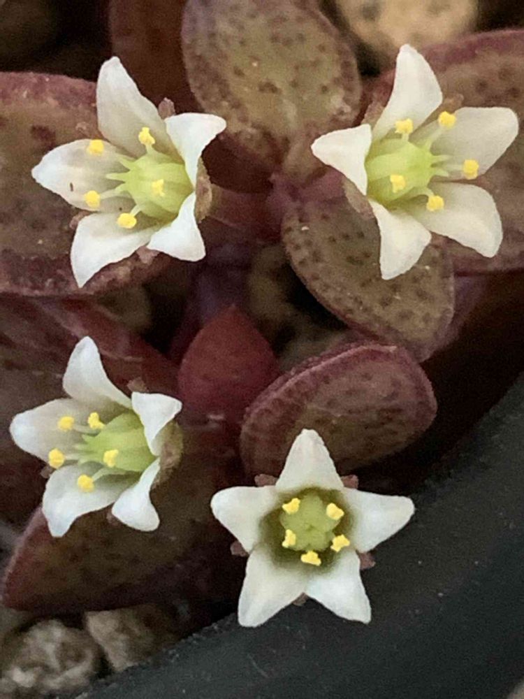 多肉って5弁のお花も結構ありますよね❣️どれも小さいんだけれどそれがまた可愛くって…。