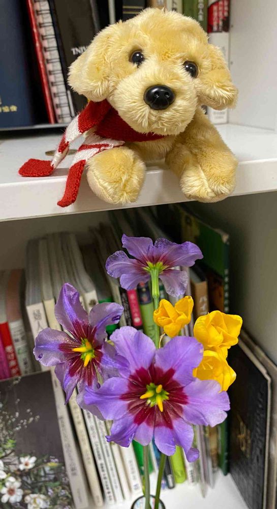 園芸書や小さい花🌸を飾っています。今は良い香りのする、リューココリーネとフリージア❣️