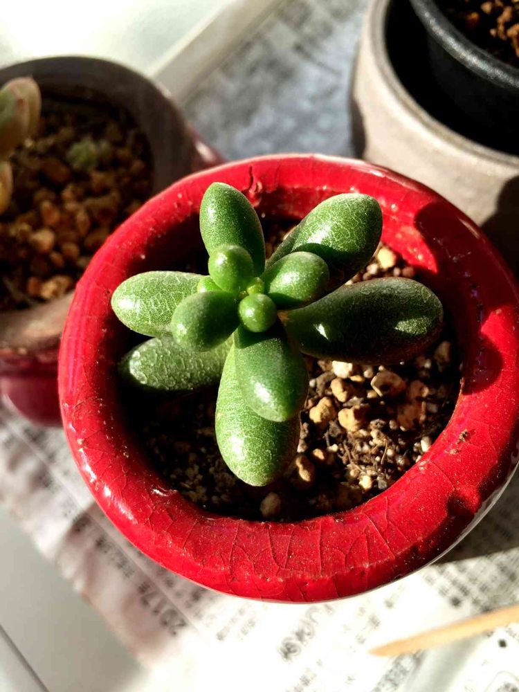 おはようございます☀✨本日は、緑亀の卵の亀男です🐢成長速度はかなりゆっくりと聞いていたけど、ポツポツと新芽が出てきて、お母ちゃん嬉しい😆🌱赤いお家が似合ってるよ〜💓今日も頑張るか〜😤