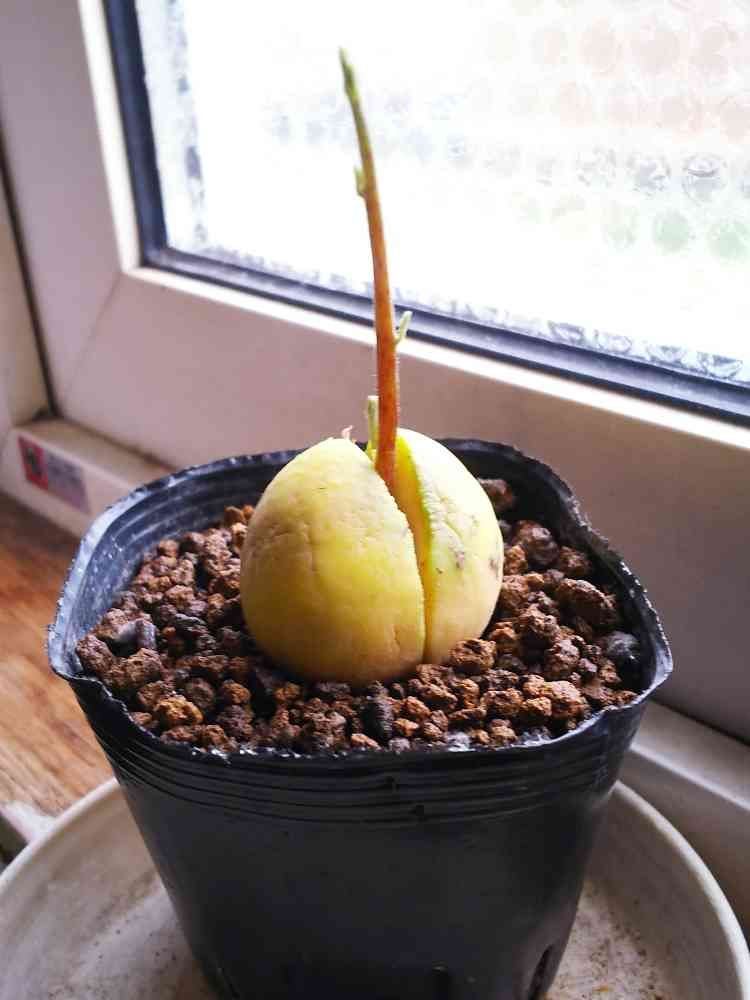 これが🥑の種なんです。見てて面白いので埋めないで、あえて出してます。他の種では見られない光景です。試してみてませんか?