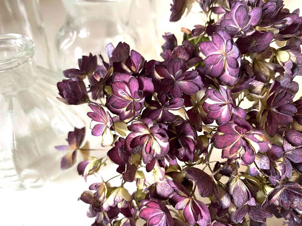 夏に、満開に咲いている紫陽花をドライにしようと切って挑戦したら、シナシナになってしまい、失敗😭
