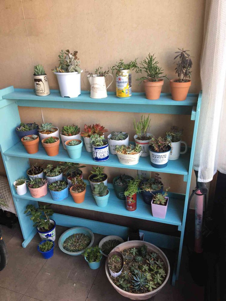 この棚作った時は全くの多肉初心者だったのと、置き場所が限られてるので丁度良いモノがみつからなかったんです。それで自前棚つくりました。後からIKEAで気に入った棚見つけたので即買いでした。🤗