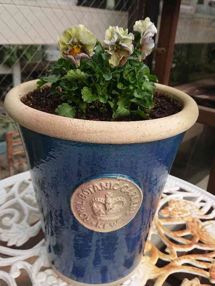 神戸の良質な植木鉢メーカーの素晴らしい英国鉢に素晴らしいパンジーを植えて僕なりの敬意を今日から育てます!