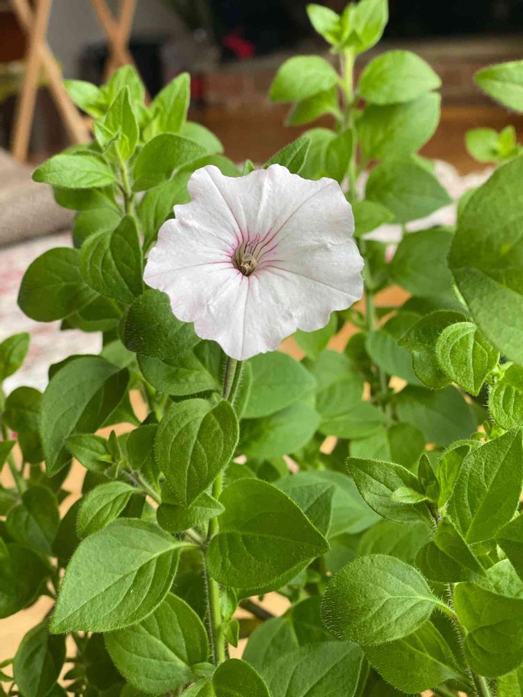 昨年秋にダメ元で挿し芽したペチュニアが室内で咲いてくれました😃