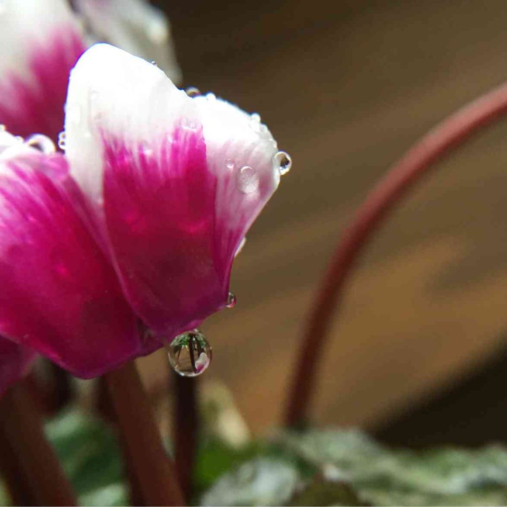 拡大したら、雫にシクラメンが映っているとは思わず嬉しくなりました😘🤗😃