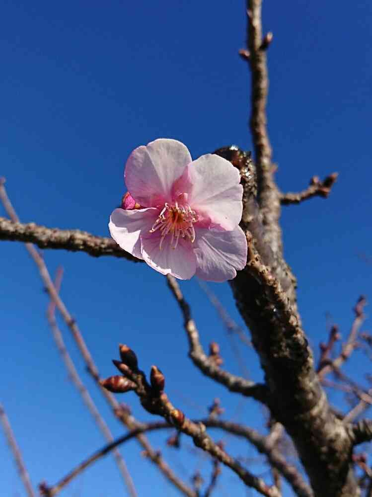 今朝保育園に三男を送りに行ったら保育園の駐車場の桜🌸が1輪咲いてました♪