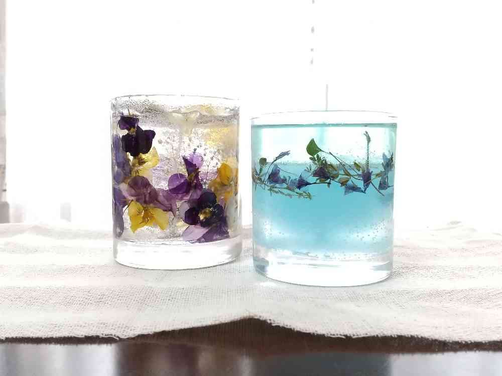 花をドライフラワーにして、ジェルキャンドルにしました!