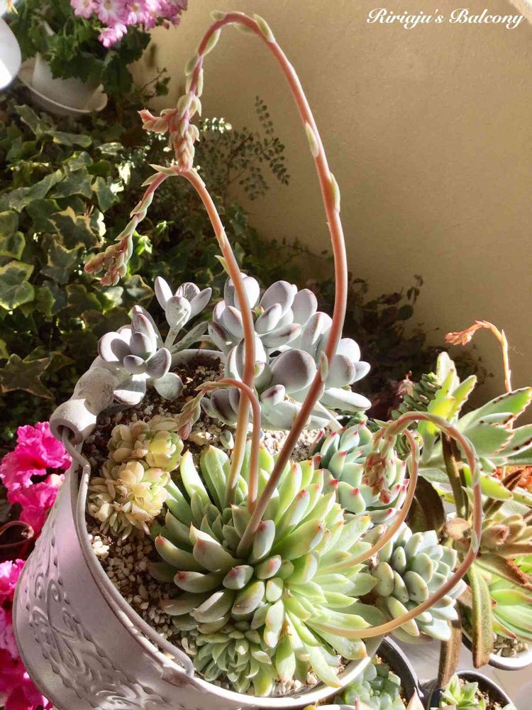 さん😃こんばんは〜💕ありがとうございまーす🎶ニョキニョキ伸びる花芽を切れなくてこんなになっちゃった✌(๑˃̶͈̀◡˂̶͈́๑)