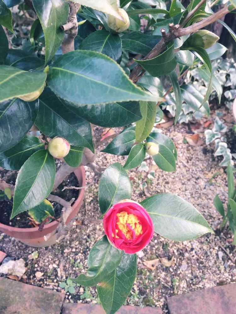 鉢の椿 一輪 😽