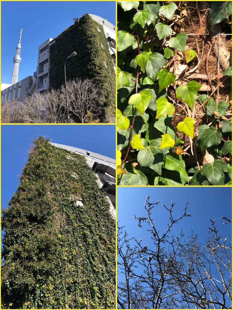 倉庫のビルの壁にびっしりとツタがからまりモンスター級の迫力です。