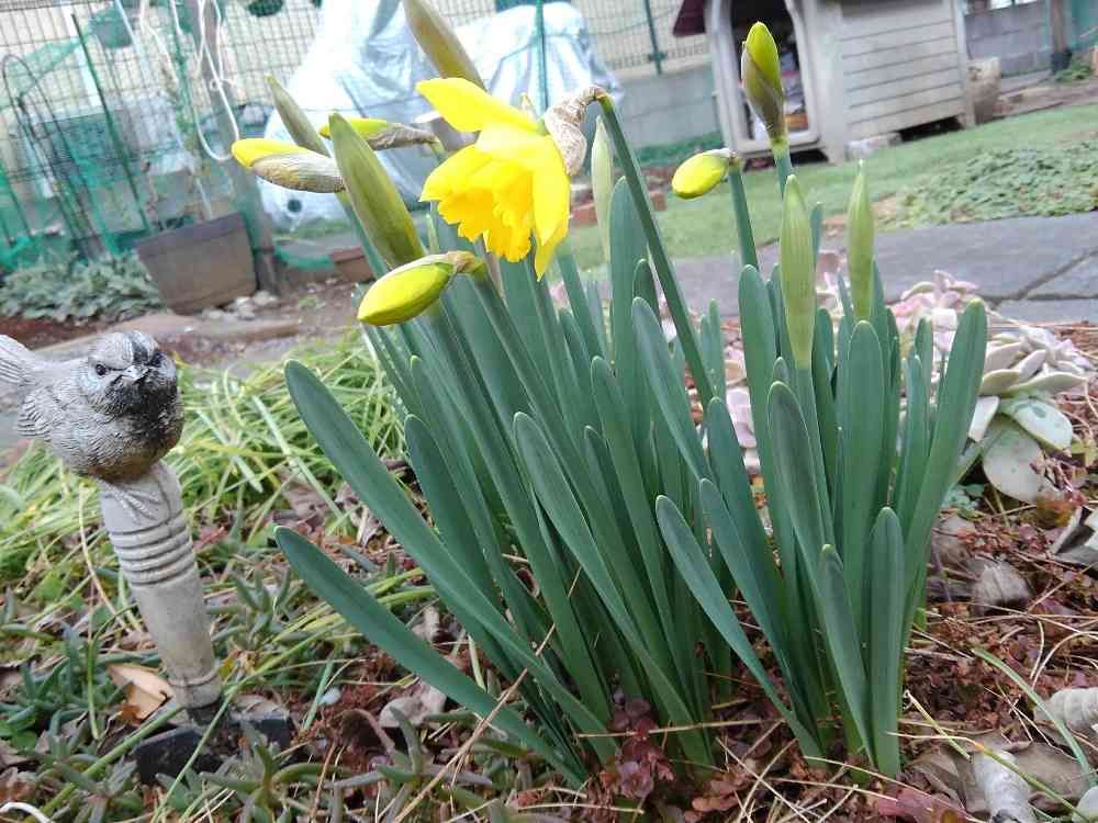 我が家の色々ある水仙の中の今年最初の子が咲き始めました😃💚😍🎶