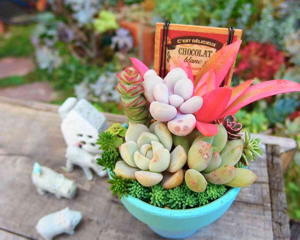 器の色、多肉のチョイス、配置が素晴らしいですo(^▽^)o