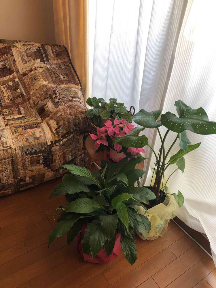 ちゅんさんの窓辺,スパティフィラム,ポインセチアの投稿画像