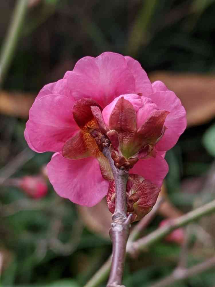 八重寒紅、早咲き🌺🌺の後ろ花姿が