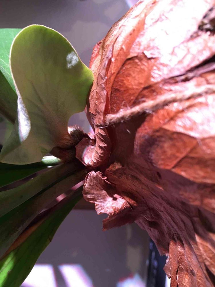 ホーンズさん待望の貯水をみんなに見てもらいたいけど、胞子葉が邪魔して裏からしか撮らせてくれない!笑