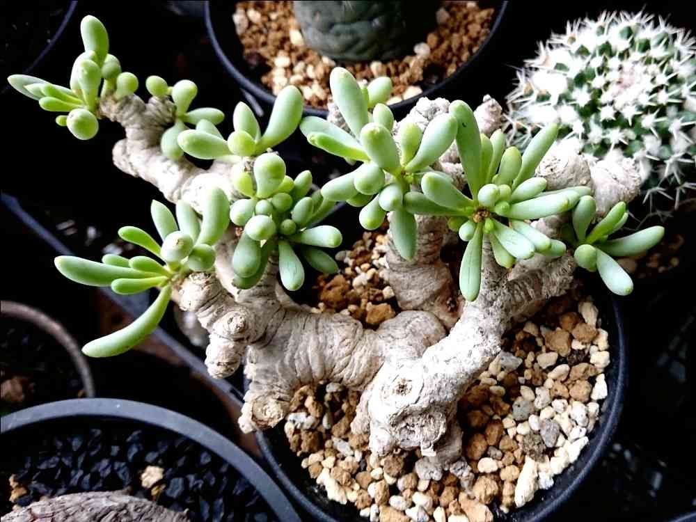 🤔🤔灰色の幹に薄緑色の葉、コーデックスの中でも上位に入る可愛いフォルムの植物だとネットで調べました。🤓