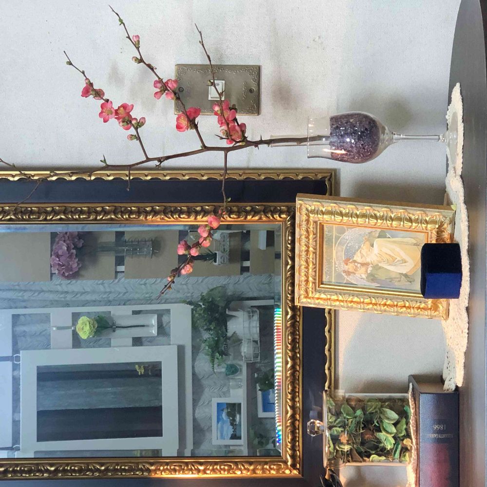 壁掛け仏壇「鏡壇ミラリエ」に今日(1/22)の誕生花の「ピンクのボケ(木瓜)」を飾ってみました。