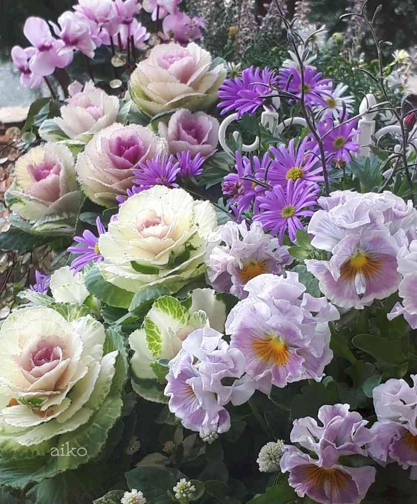 愛子さんのテラス,葉牡丹,フリル咲きパンジーの投稿画像