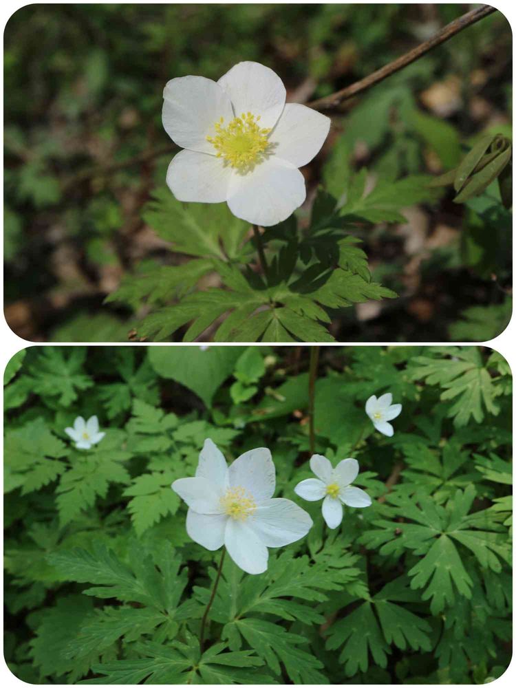 遠近法では有りません。大きい花がイチリンソウ、小さい方がニリンソウです。ニリンソウが2cm程、イチリンソウが4cm程で2倍です。面積にすると4倍、大きいです。第一印象は一言「デッケェ〜‼️」でした。✌️😃✌️