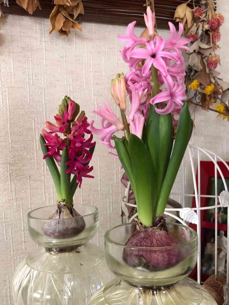 昨日もスーパーの生花コーナーで鉢植えで3株植えてあって¥498のヒヤシンス見たけど、鉢より水耕栽培が良いのよ✨