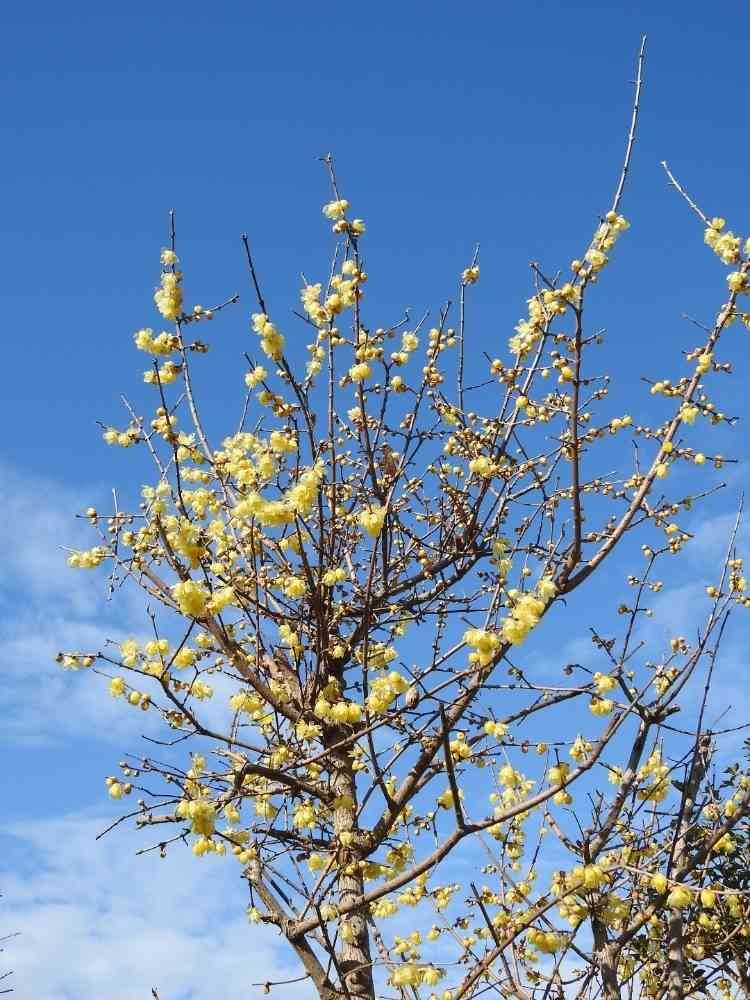 道すがら❗民家の庭先て青空に映えるロウバイの花🌼😃