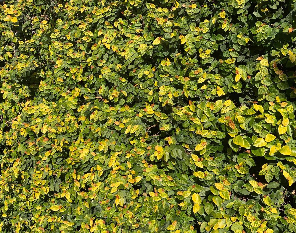 庭木でした。目隠し用に植えてあり、葉の色が黄色や緑、濃い色など、まるで油絵のような感じです。