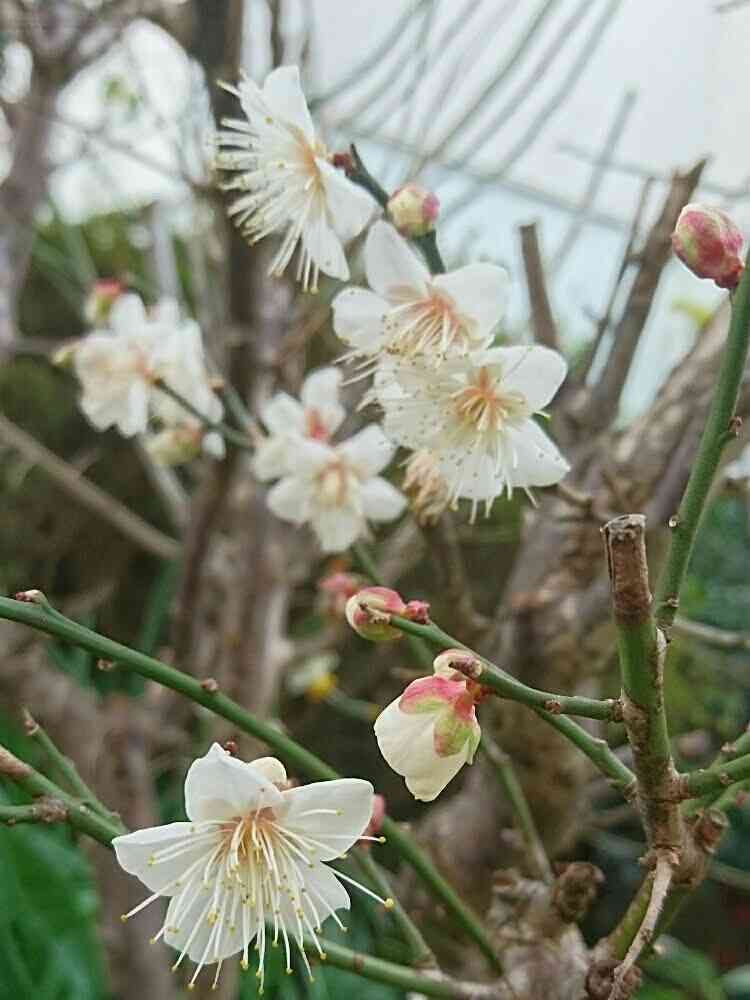 春を待つ小さな庭に梅の💠が咲き始めました🙆