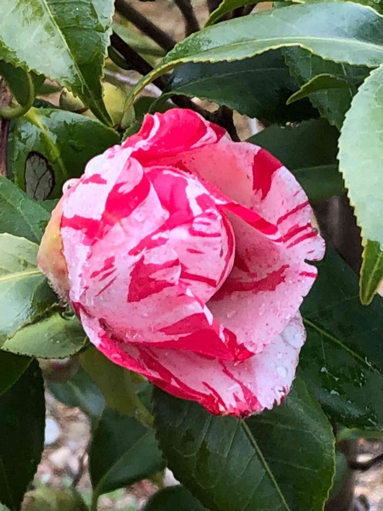 雨に濡れて☂️ ツバキ ・蝦夷錦が間も無く開花です❤️
