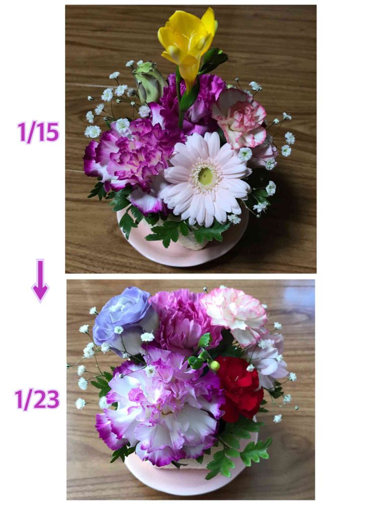 後ろに隠れていた赤いカーネーションを前に持ってきた。