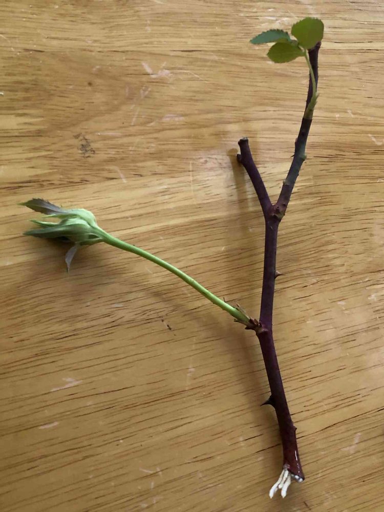 ピエールドゥロンサール、剪定した枝を一応水に入れてたら、いつの間にか発根して蕾までついてる😳