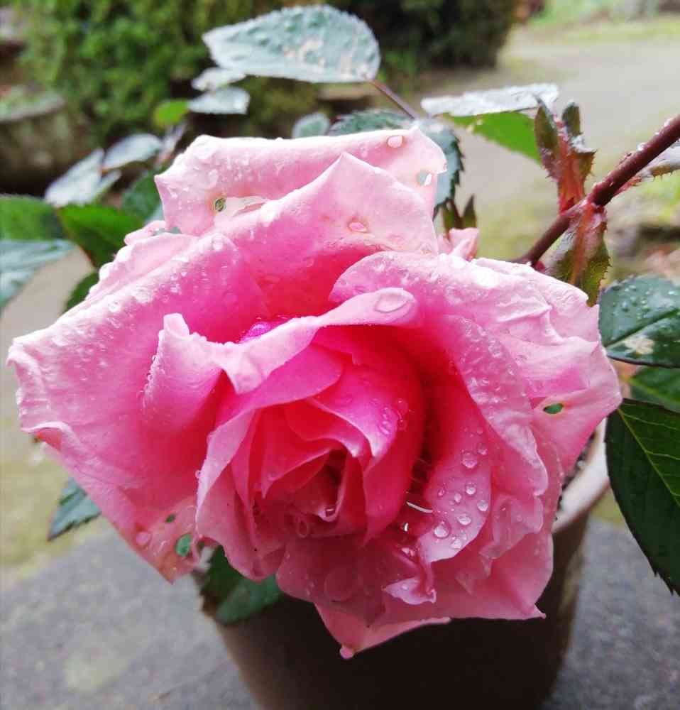 ハボタンよりも雨粒に似合うのはやっぱり薔薇ですね(*ˊ艸ˋ)♬*