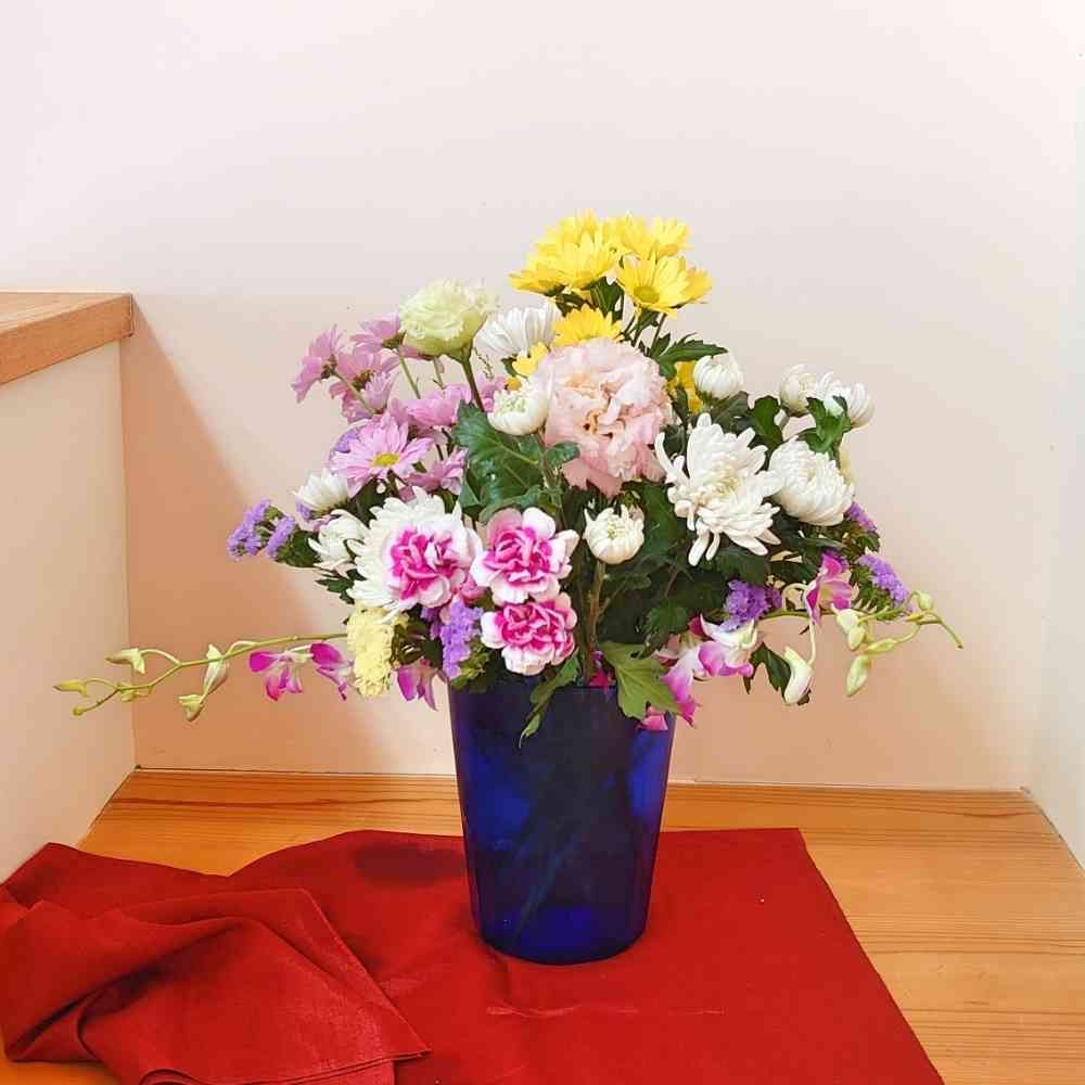 花がおおすぎると 過ぎたるは たらなるごとし とか 花の美しさが散漫になる気がします テレビのプレバトのような愚は日本人らしくないように思うのです これはわたくしの個性に過ぎません 人それぞれのかをじょうがあり また 若い人と老人で好みが違いですね どうぞ気にしないで下さい