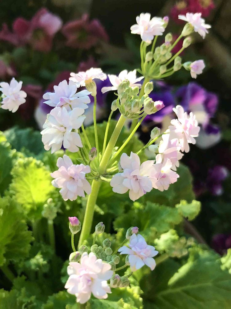 いろんな色のプリムラがありますが、この白からラベンダー色のプリムラが上品でとても素敵に見えました😊葉っぱからのメロンの香りもうっすらですが楽しめます。これから満開になっていくのが楽しみです☺️‼️