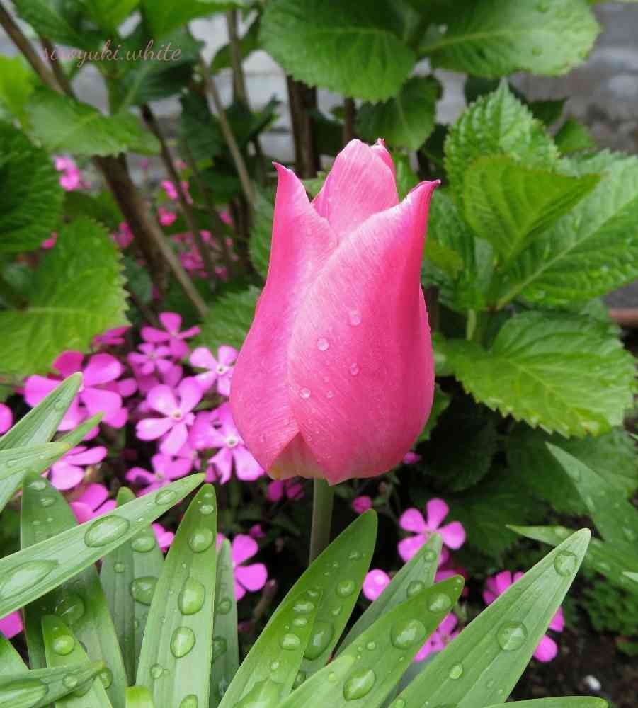このチューリップと一緒に写っているのは「日本サクラソウ」と呼ぶらしいです😃