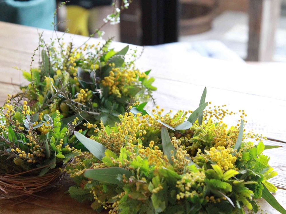 ビタミンカラーのパールアカシアとミモザとユーカリで作る元気の出る作品となります。是非ご興味のある方は遊びにお越しくださいませ。