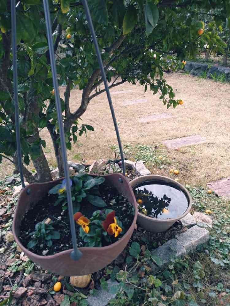 これもハンギング、種から育てたビオラで、何色が咲くかお楽しみでした。