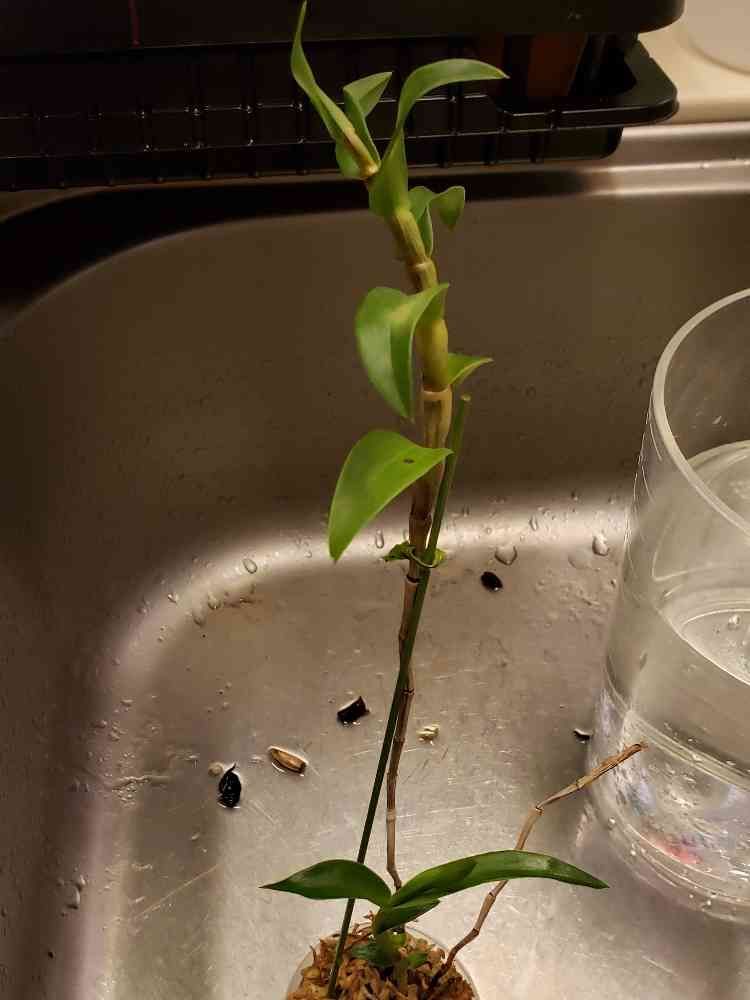 と、心なしかお小言をつけてしまう、デンドロビウム ミスユー サファイアNo.1。だって根元にいくほど細い支柱より更にバルブが細くて折れそうなくらいにみえちゃうだもん。