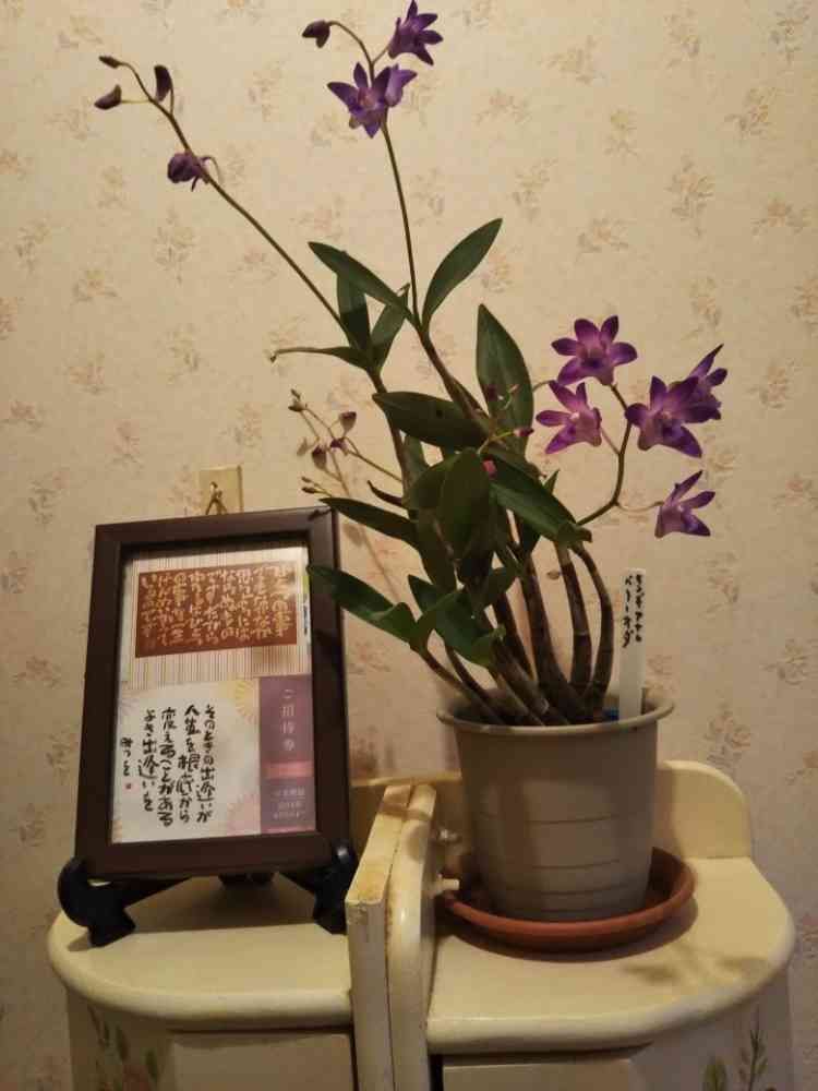 テンドロビウム系(キンギアナム ベリーオダ?)満開になりました。今は(二週間前から)トイレに飾ってます❗️はい 市販の消臭剤より良い匂い、イイエ 育てた、育った、咲いてくれた花だから、一日必ず十数回以上行く場所に飾らせていただきました。いく度会話しながら用足せます(自己満足) これは失礼‼️ (一ヶ月以上飾れます)購入五年位になります。私みたいな初心者でも、株分けや流木付けにと数倍になりながら咲いてくれます。ご近所知人宅に嫁いでいます。トイレの神様❗️喜んで見てくれるでしょうか?(助言で手直し)