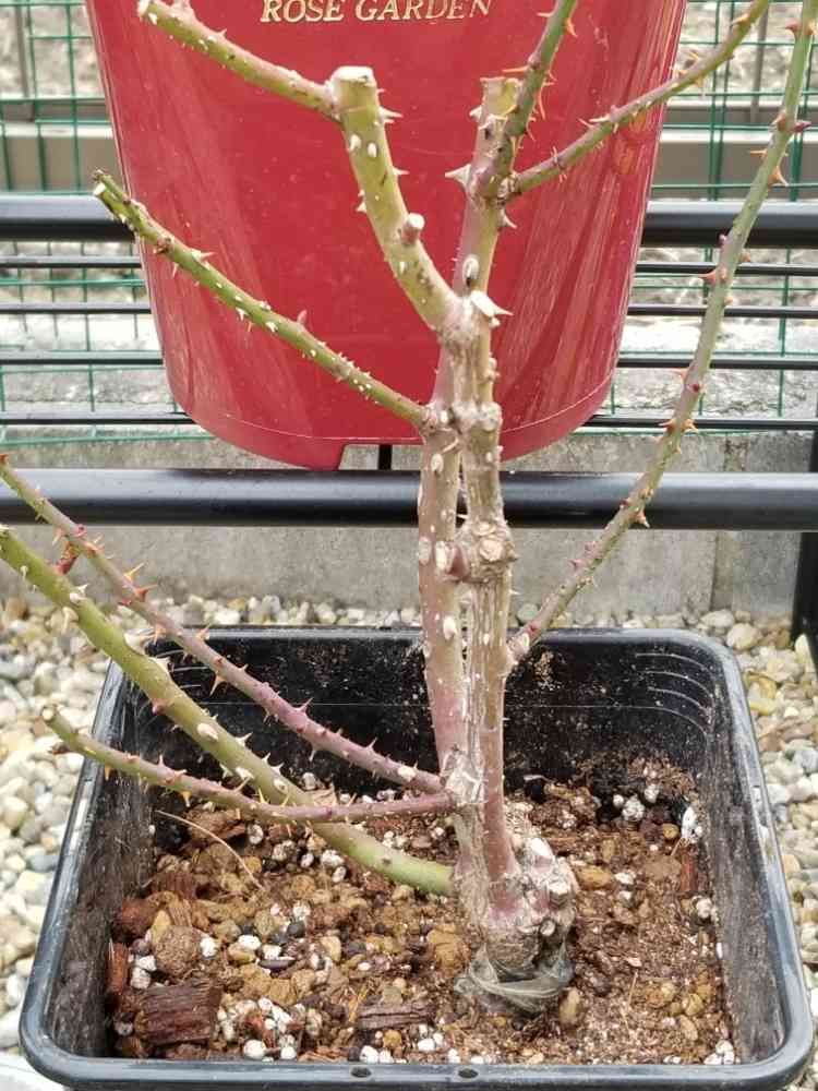 届いた苗が一般の6号角鉢だと思われるものに入っていたので、🌹先生だと同じ鉢に根を整理して土を替えて戻すと言われそうですが…、、、