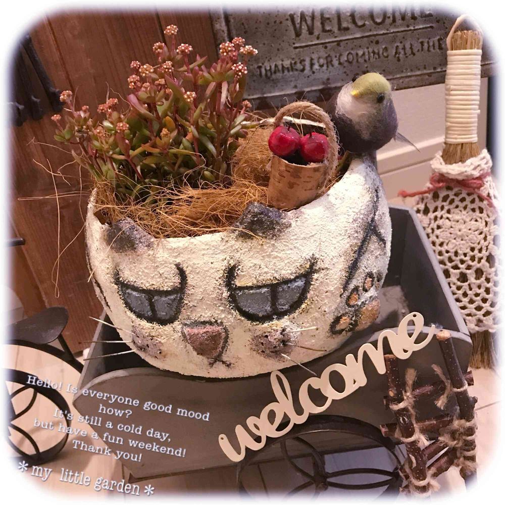 本日のpicは、猫ちゃんモルタル 鉢と