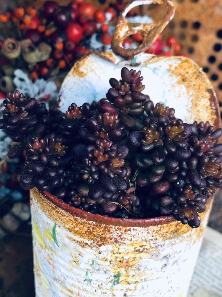 めちゃ渋いですね🌵✨一瞬黒豆かと思いました🙇♀️多肉ちゃんの種類は?私にはわかりません😅いつもリメ缶との感じがとっても素敵で尊敬して見ております😍