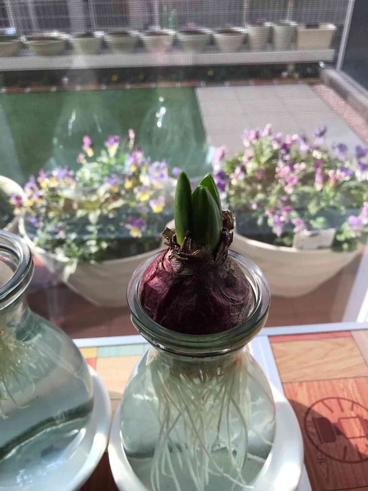 窓辺,ヒヤシンス 水耕栽培,花のある暮らしの投稿画像