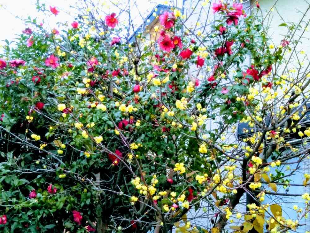 ロウバイと山茶花です。