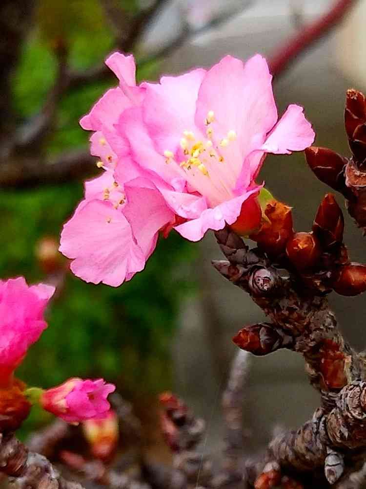 こちらと同じ濃いピンクで全員下向きの緋寒桜🌸💕