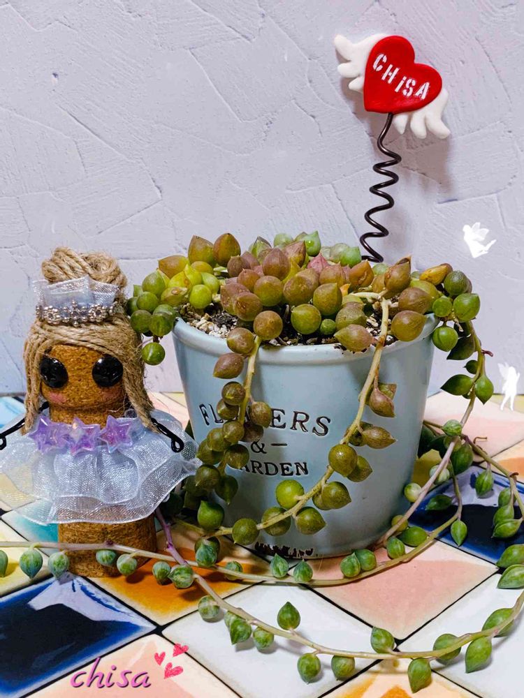 コルクちゃんのドレスと鉢の色がオソロでますます可愛い❢(≧∇≦)ズッキュ〜ン💘(←又今日も使えて嬉しい😄)